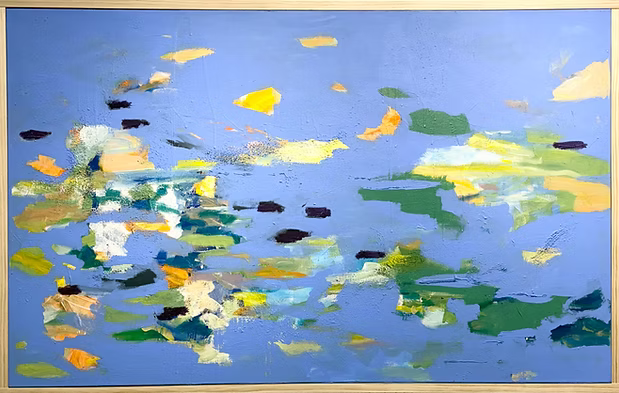 Conversation is an original mixed media composition by Rachel Townsend, measuring 30" x 48". This substantial work combines diverse materials and techniques to create a dynamic visual dialogue. The artist's layered approach invites viewers to discover multiple perspectives within a single frame, making it a compelling focal point for any serious art collection. A significant investment piece that demonstrates technical mastery and conceptual depth.