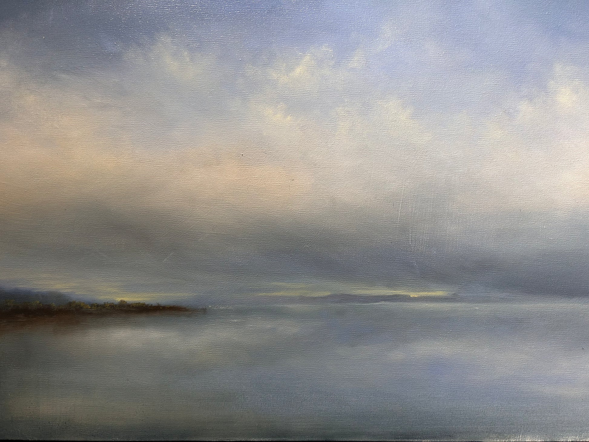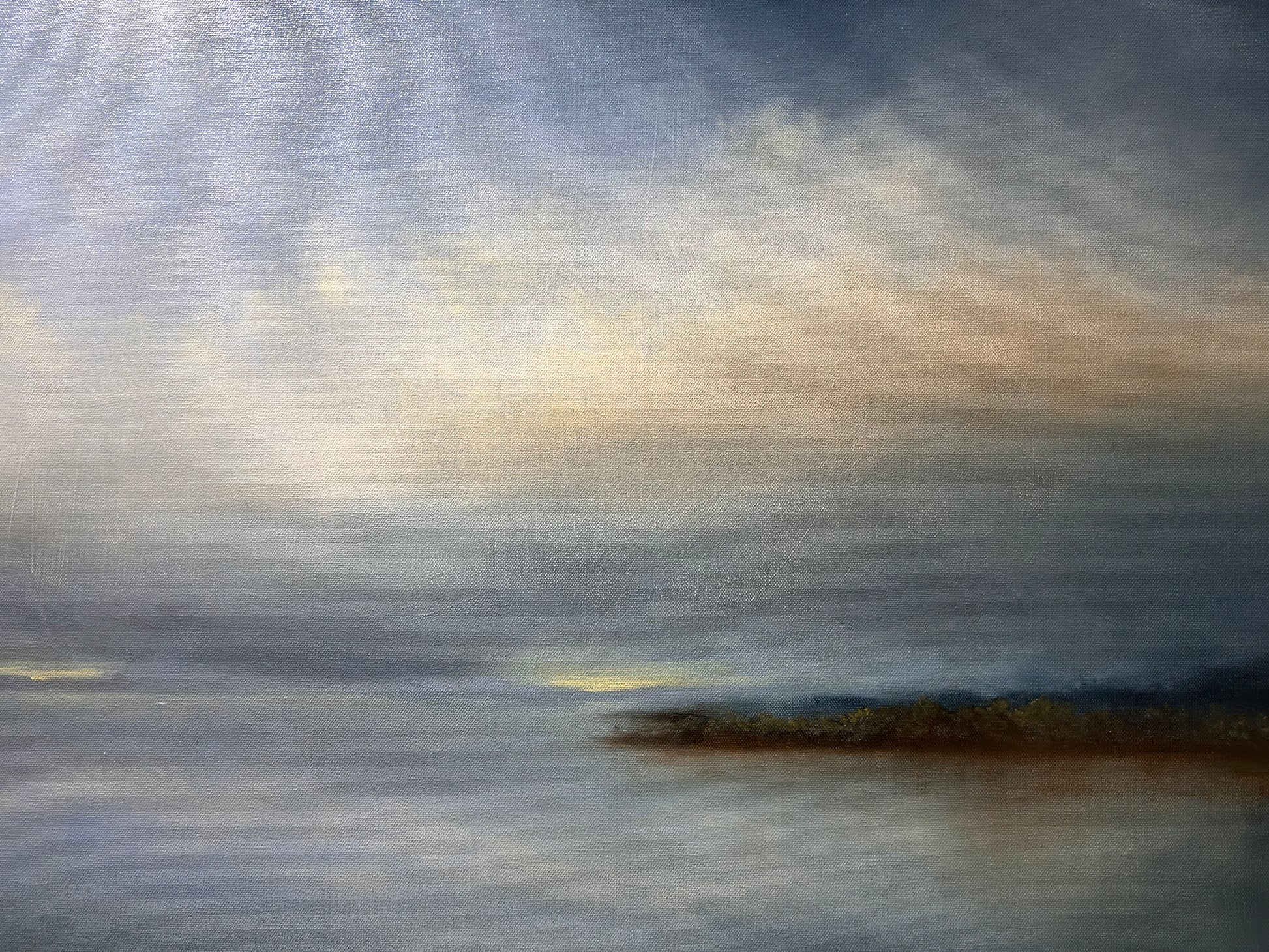 Heaven Touches Earth is a striking 24"x48" oil painting by Dana Nichols that commands attention with its expansive horizontal format. This substantial canvas work showcases the artist's mastery of the medium, blending technical precision with evocative imagery. The generous dimensions make it an ideal focal point for galleries, collectors, and discerning art enthusiasts seeking a significant statement piece. Nichols' oil technique brings depth and luminosity to the composition, creating a work of enduring visual and emotional impact suitable for prominent wall placement.