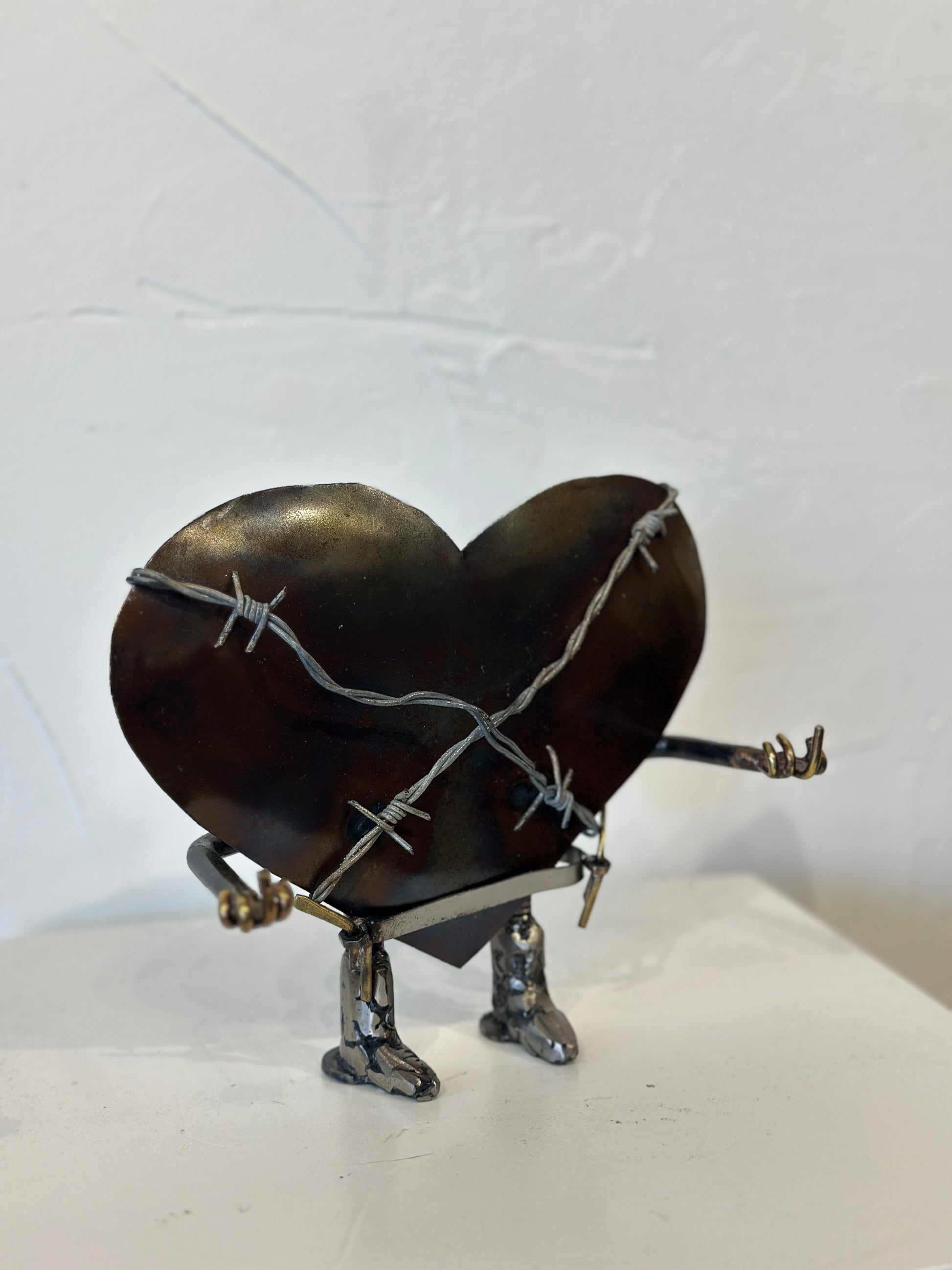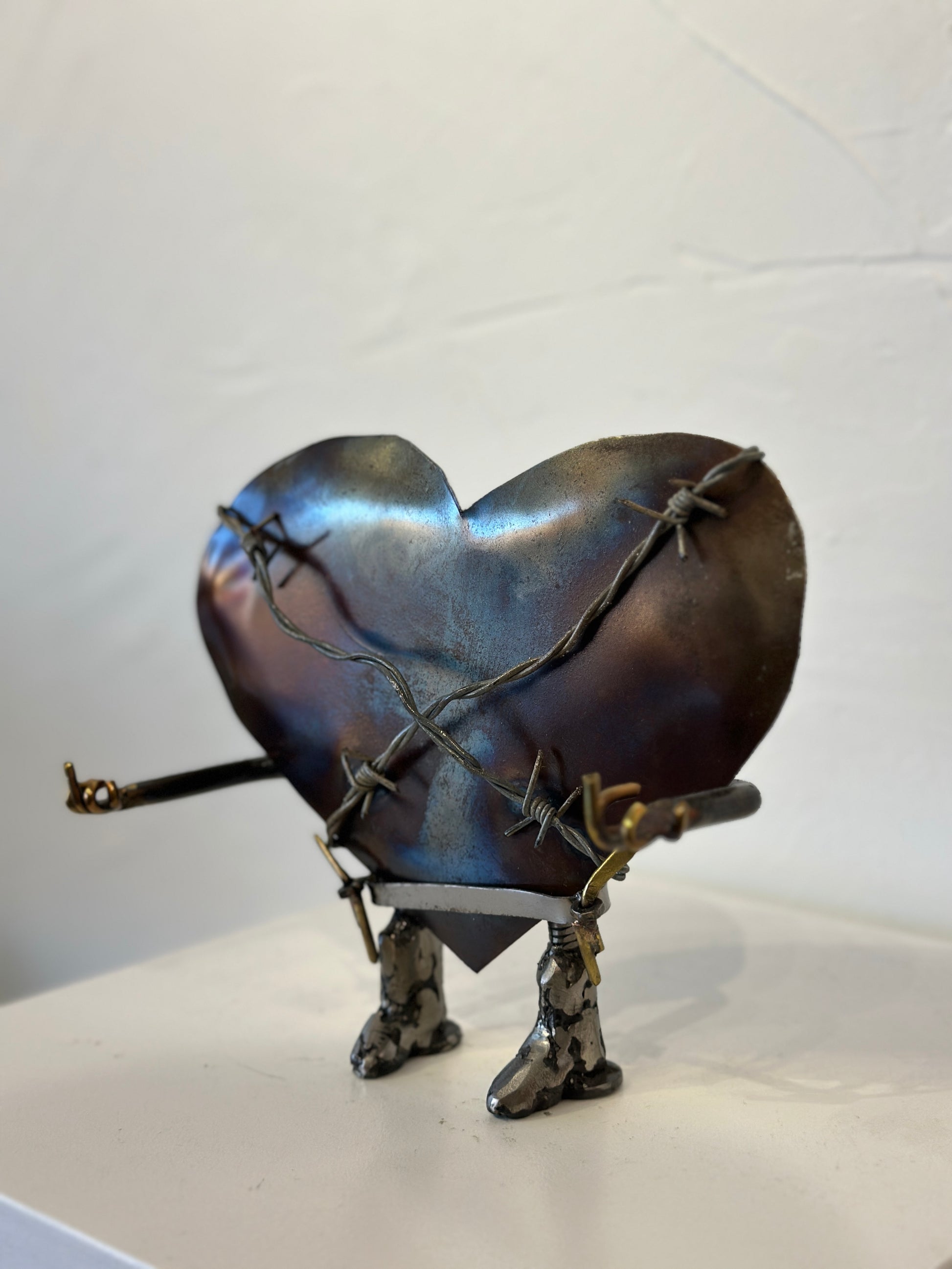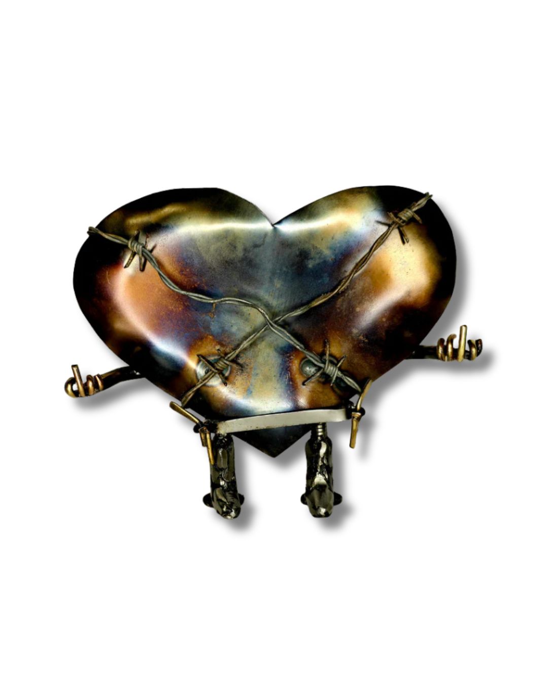 Enrique Del Angel's "Love Stinks" is a compelling small metal sculpture that demonstrates masterful craftsmanship and conceptual depth. This piece combines technical precision with emotional resonance, showcasing Del Angel's signature approach to contemporary sculptural work. The artist's manipulation of metal creates dynamic visual interest while inviting viewers to engage with its provocative title and underlying commentary. Ideal for collectors seeking thought-provoking artwork that bridges fine art and accessible design, this sculpture serves as a distinctive focal point for any interior space.