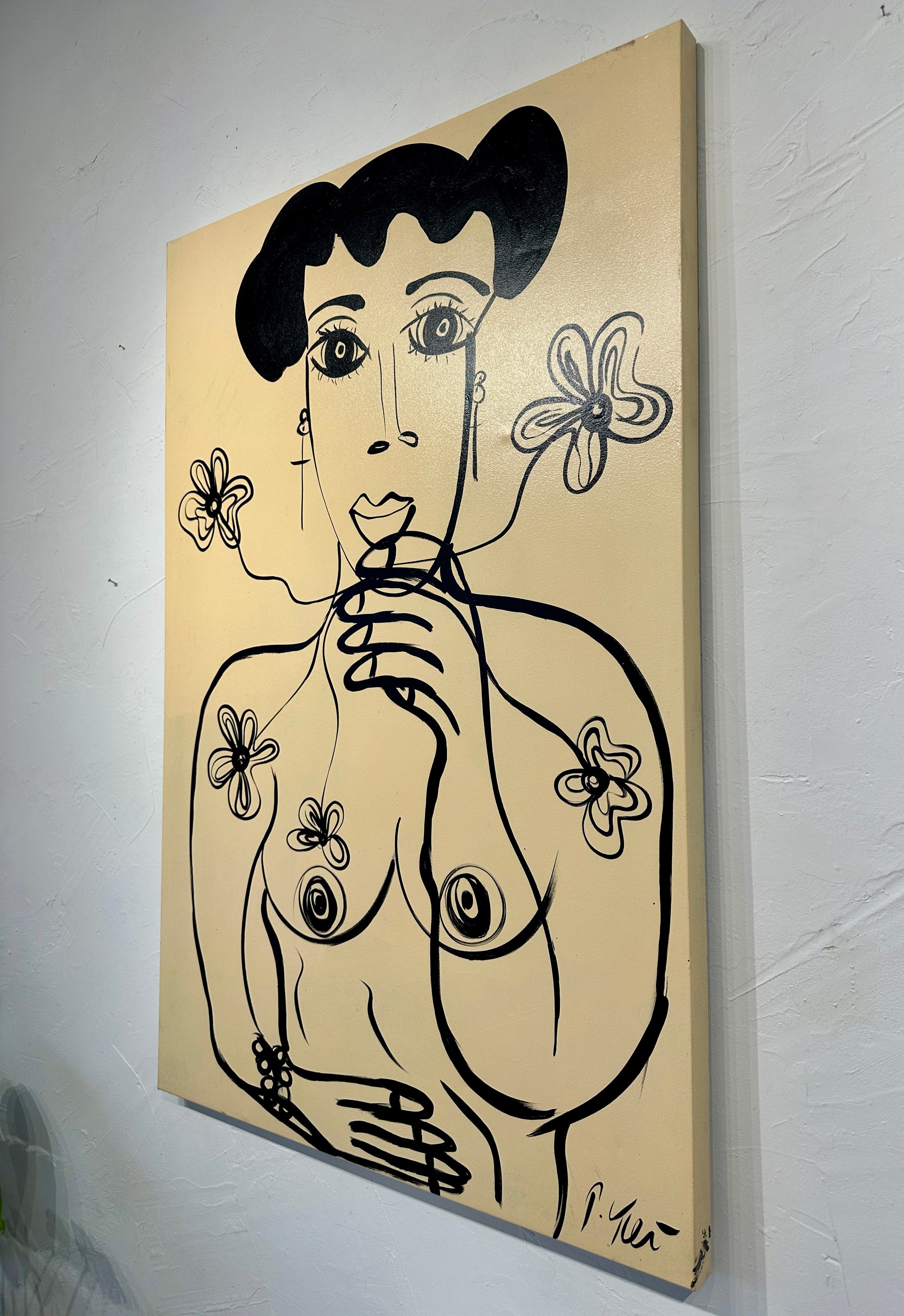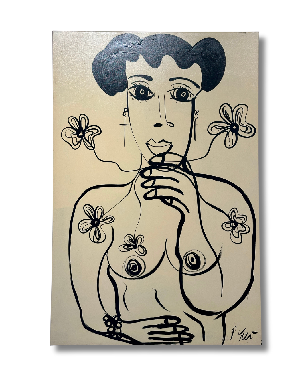 This 31.5 x 47.5 inch oil painting on canvas presents Peter Keil's portrait work in a restrained black and white palette, echoing the formal sophistication of Picasso's monochromatic studies. The composition employs tonal contrast and gestural mark-making to articulate form and psychological presence without chromatic distraction. Keil's command of value and line creates a work of considerable visual intensity and intellectual rigor. An essential acquisition for discerning collectors of modernist-influenced portraiture.