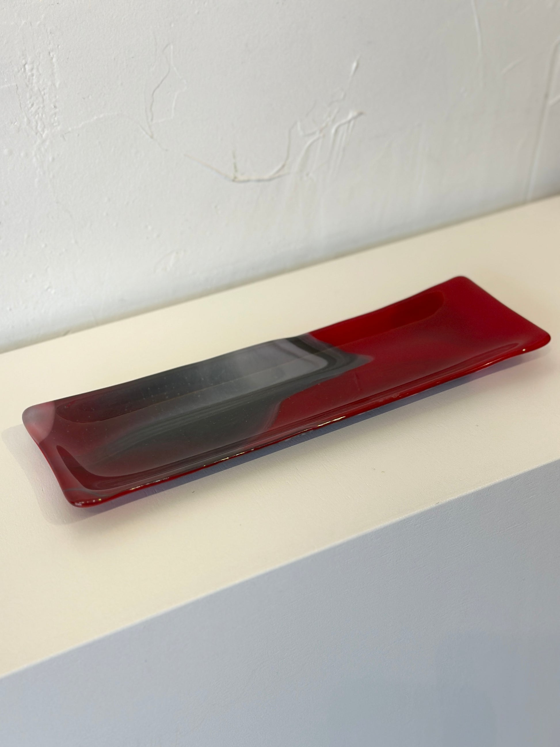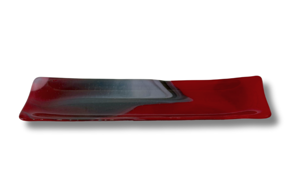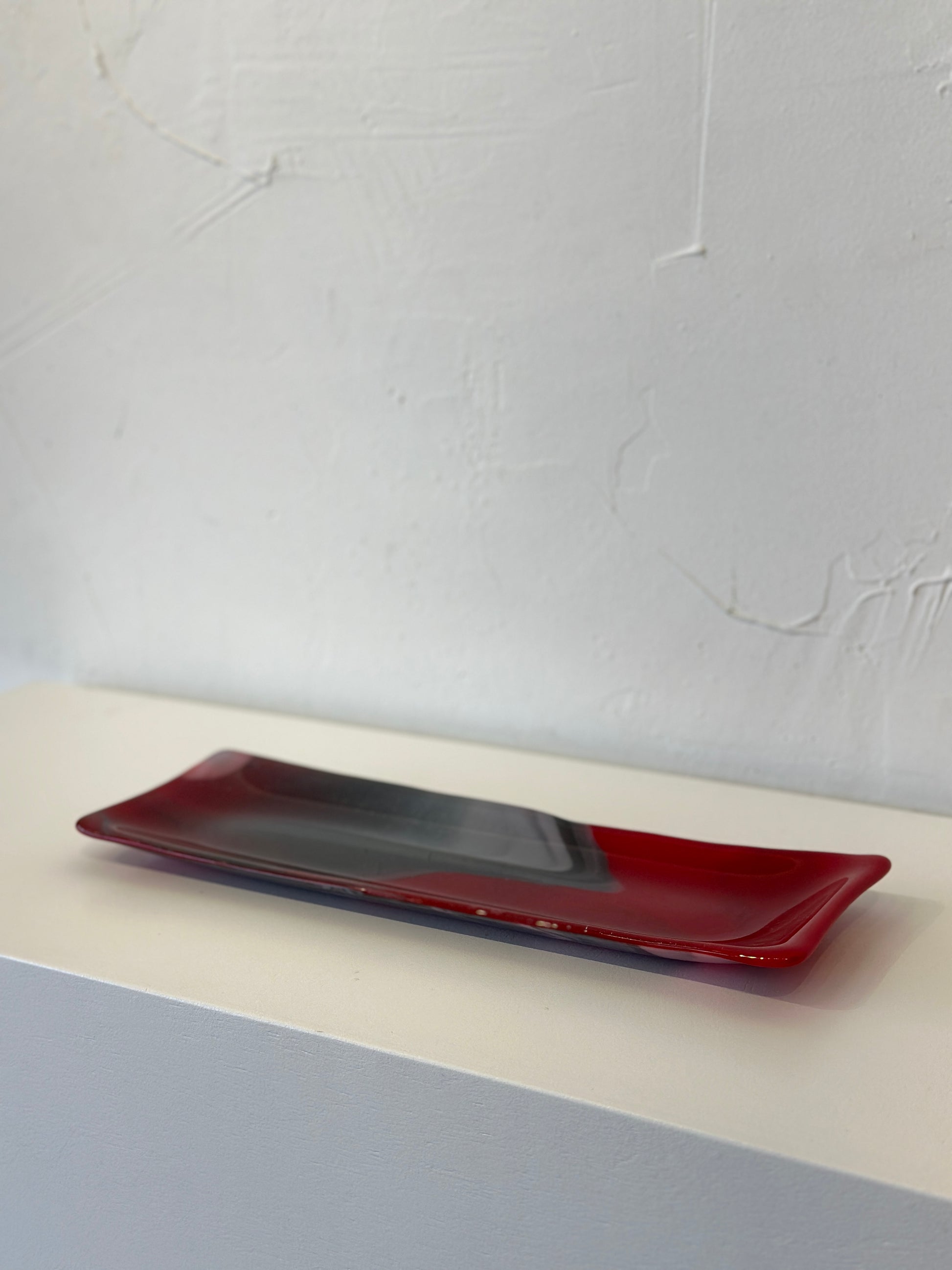 This striking fused glass tray showcases the distinctive artistry of Kashmira Mistry, blending rich red and sophisticated grey tones into a unified composition. Each piece is individually crafted, making this a genuine one-of-a-kind creation. The fused glass technique produces a seamless, durable surface perfect for serving or display. An exceptional addition to any collection that values handmade artistry and contemporary design.