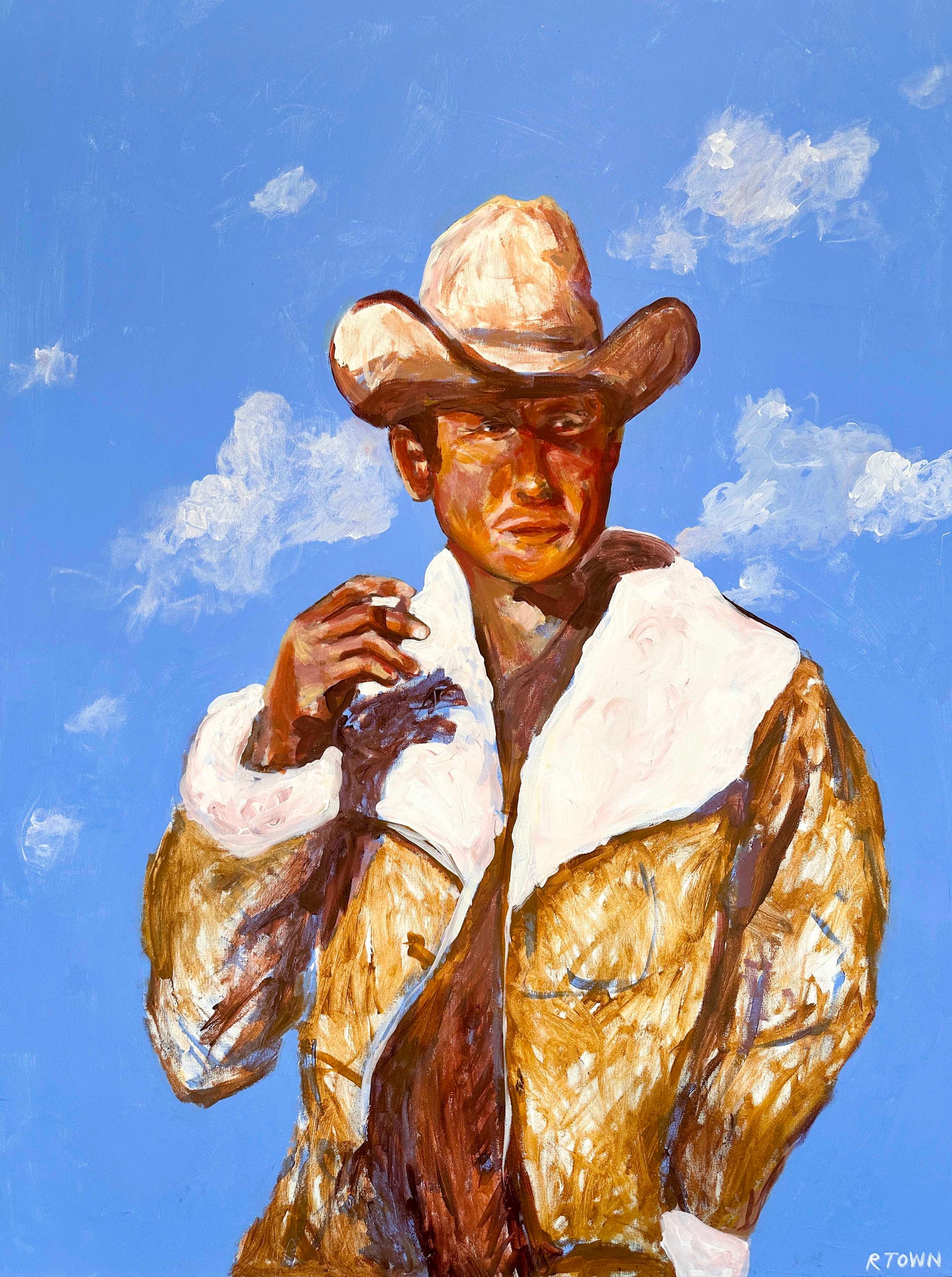 Weathered is a striking 36"x48" acrylic composition by Rachel Townsend that captures the essence of time's passage through layered color and texture. This substantial canvas work demonstrates sophisticated handling of the medium, with deliberate brushwork that suggests both decay and resilience. The piece invites contemplation of natural processes and the beauty found in surfaces marked by exposure and change. A commanding presence in any gallery or residential space, this work exemplifies contemporary figurative painting at a professional scale.